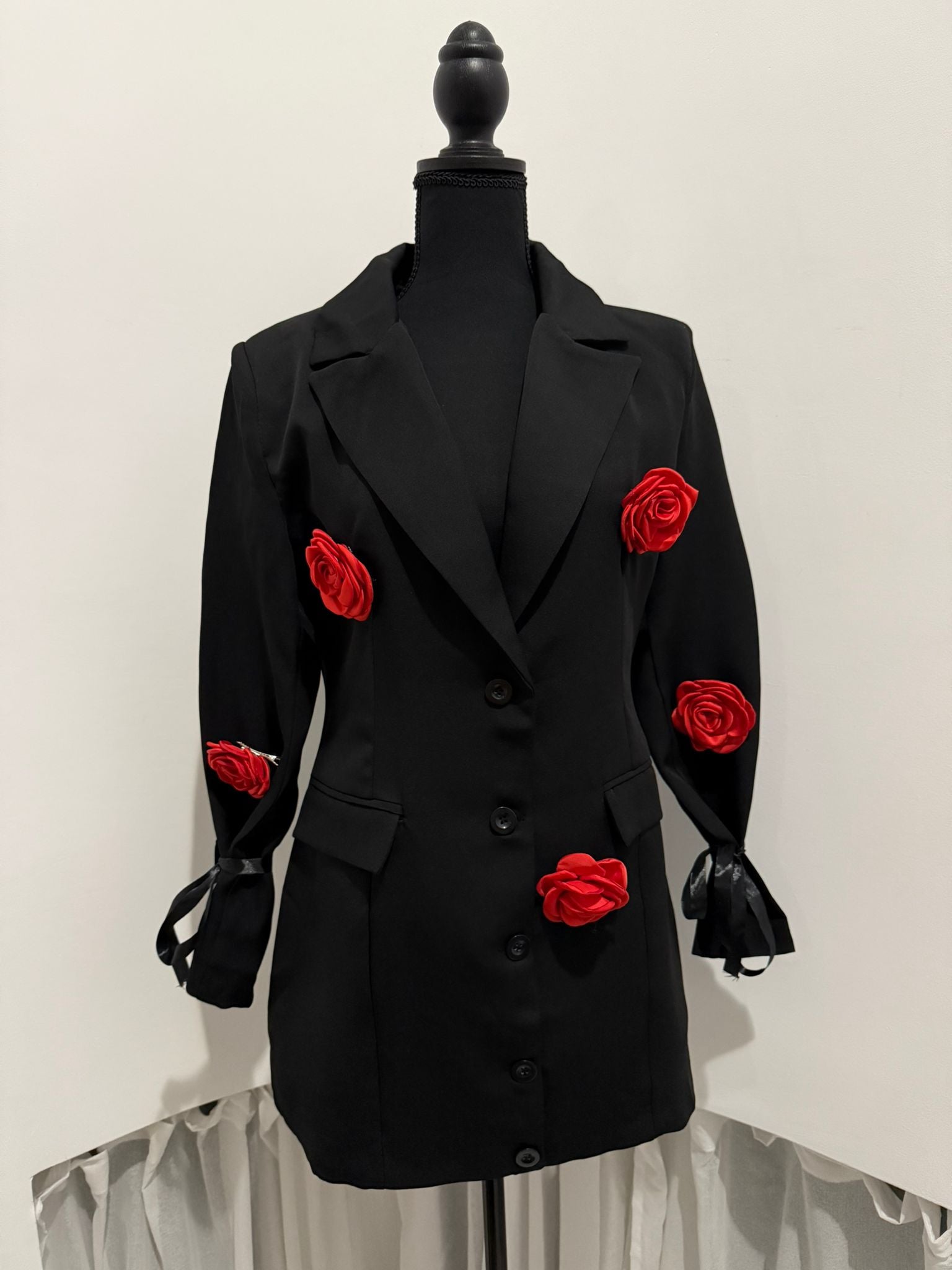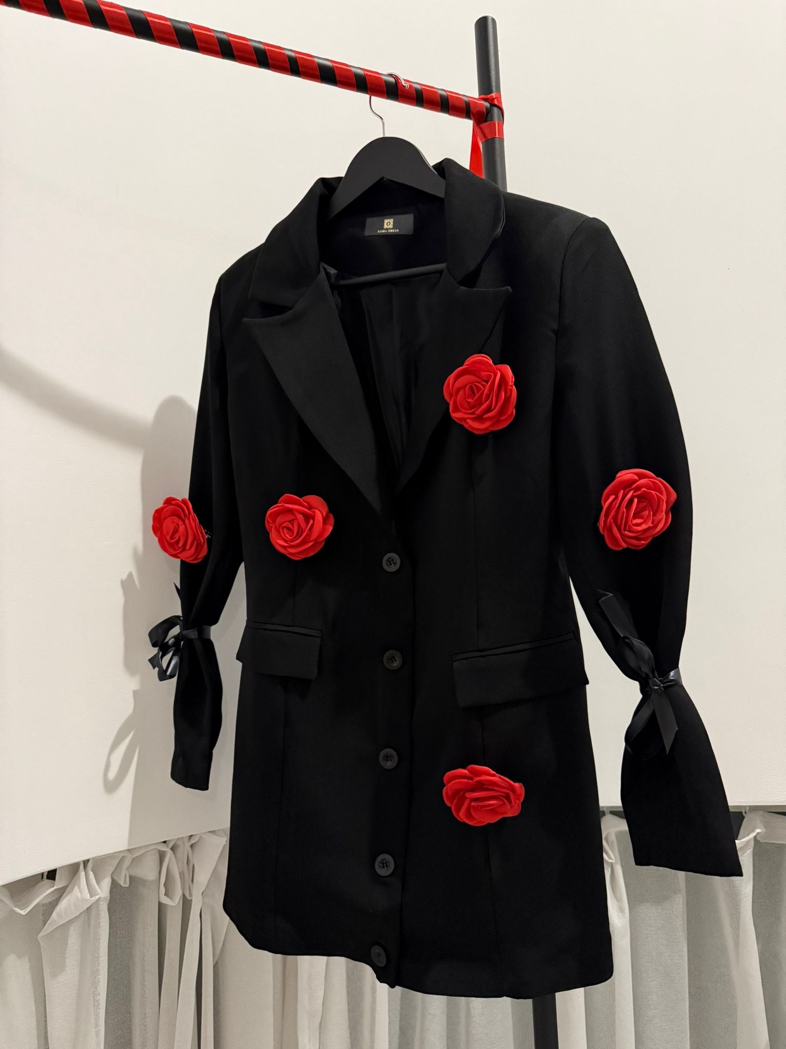 Sacou elegant, cu o croială modernă și feminină, ideal pentru ocazii speciale sau ținute office. Fabricat dintr-un material premium, se așază frumos pe corp și oferă un plus de rafinament oricărei apariții. Se închide cu nasturi discreti și poate fi ușor asortat cu fuste sau pantaloni eleganți.