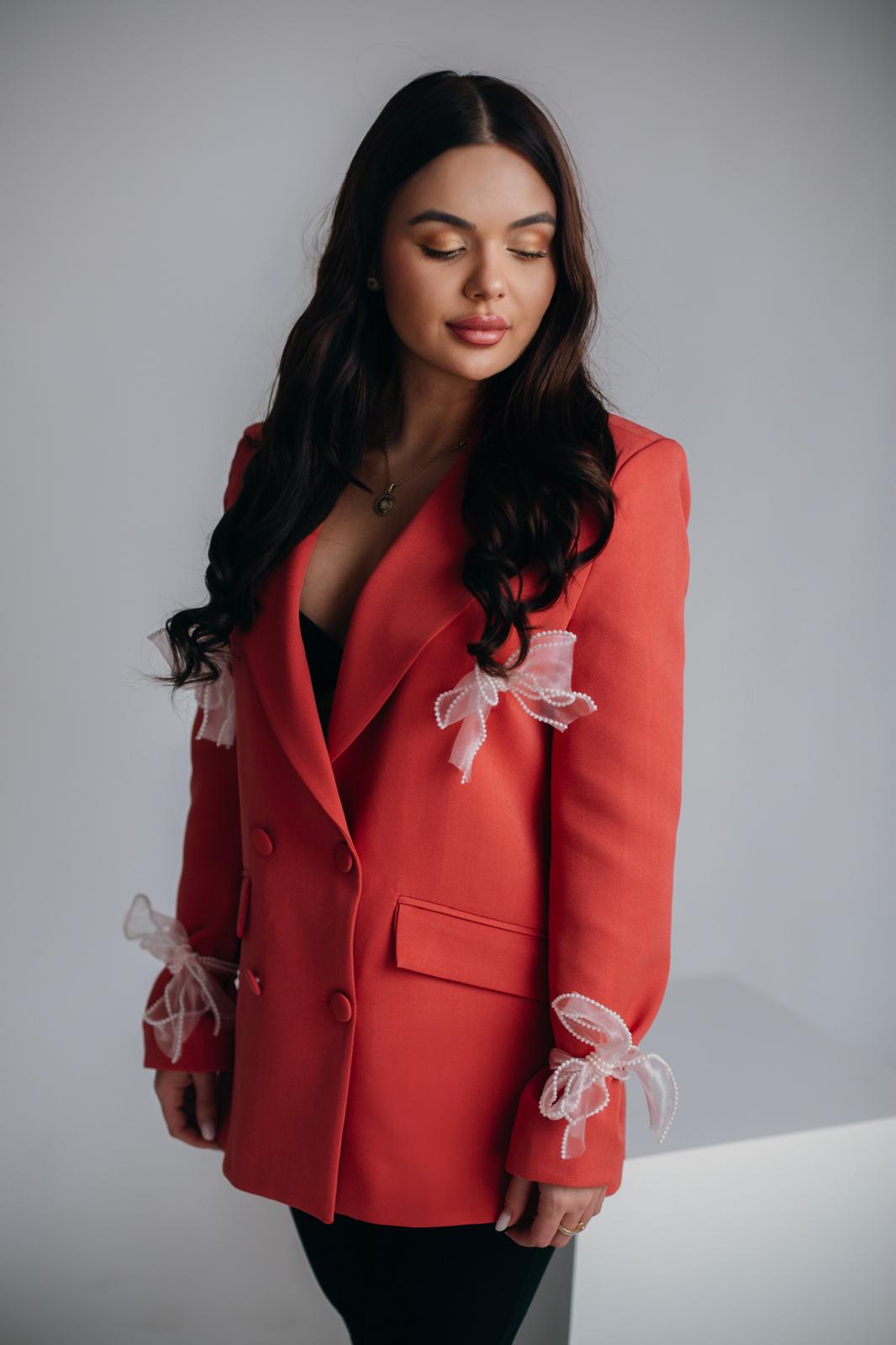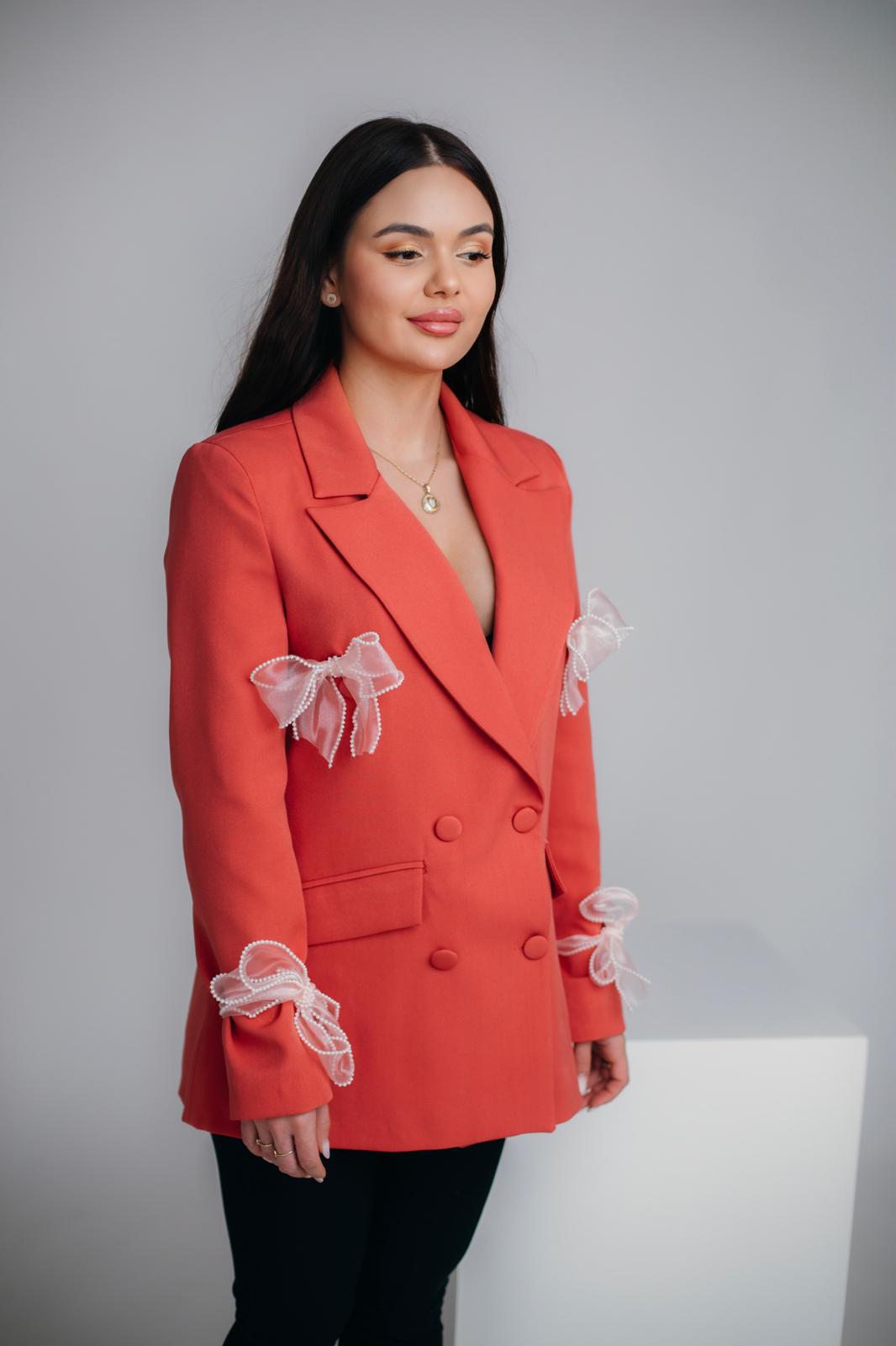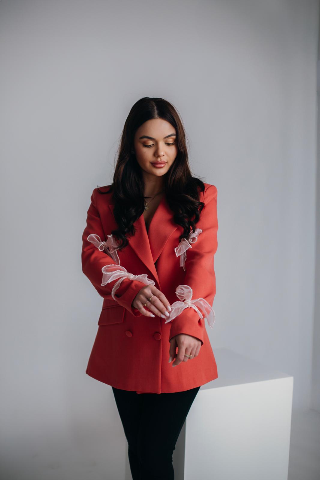 Sacou elegant, cu o croială modernă și feminină, ideal pentru ocazii speciale sau ținute office. Fabricat dintr-un material premium, se așază frumos pe corp și oferă un plus de rafinament oricărei apariții. Se închide cu nasturi discreti și poate fi ușor asortat cu fuste sau pantaloni eleganți.