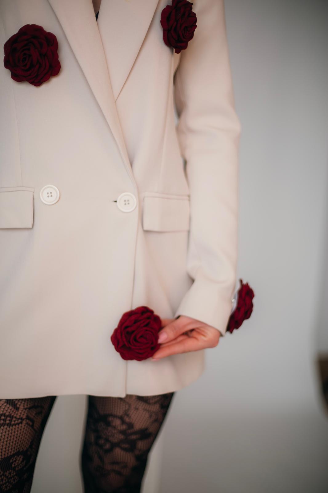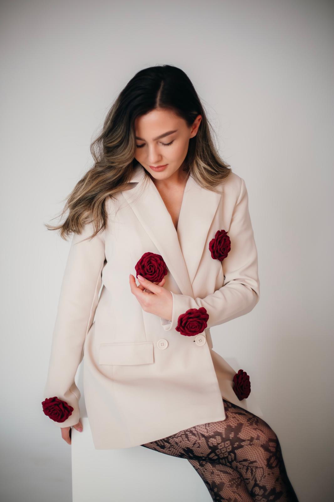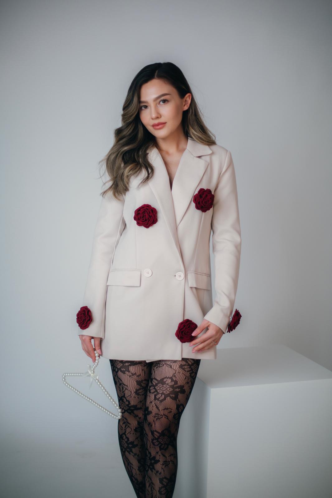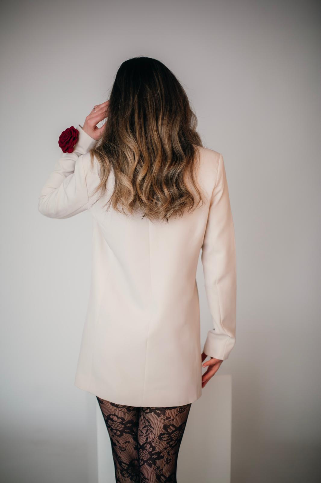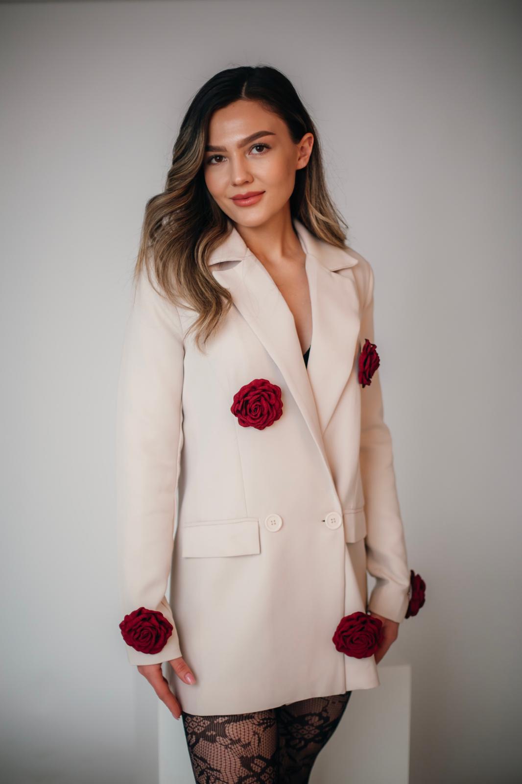 Sacou elegant, cu o croială modernă și feminină, ideal pentru ocazii speciale sau ținute office. Fabricat dintr-un material premium, se așază frumos pe corp și oferă un plus de rafinament oricărei apariții. Se închide cu nasturi discreti și poate fi ușor asortat cu fuste sau pantaloni eleganți.