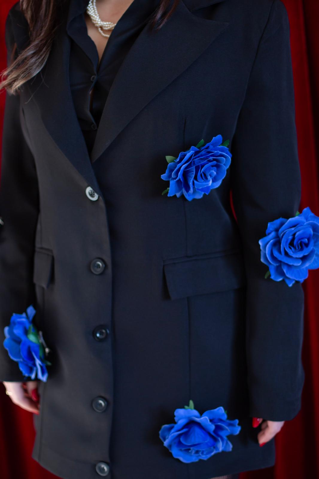 Sacou elegant, cu o croială modernă și feminină, ideal pentru ocazii speciale sau ținute office. Fabricat dintr-un material premium, se așază frumos pe corp și oferă un plus de rafinament oricărei apariții. Se închide cu nasturi discreti și poate fi ușor asortat cu fuste sau pantaloni eleganți.