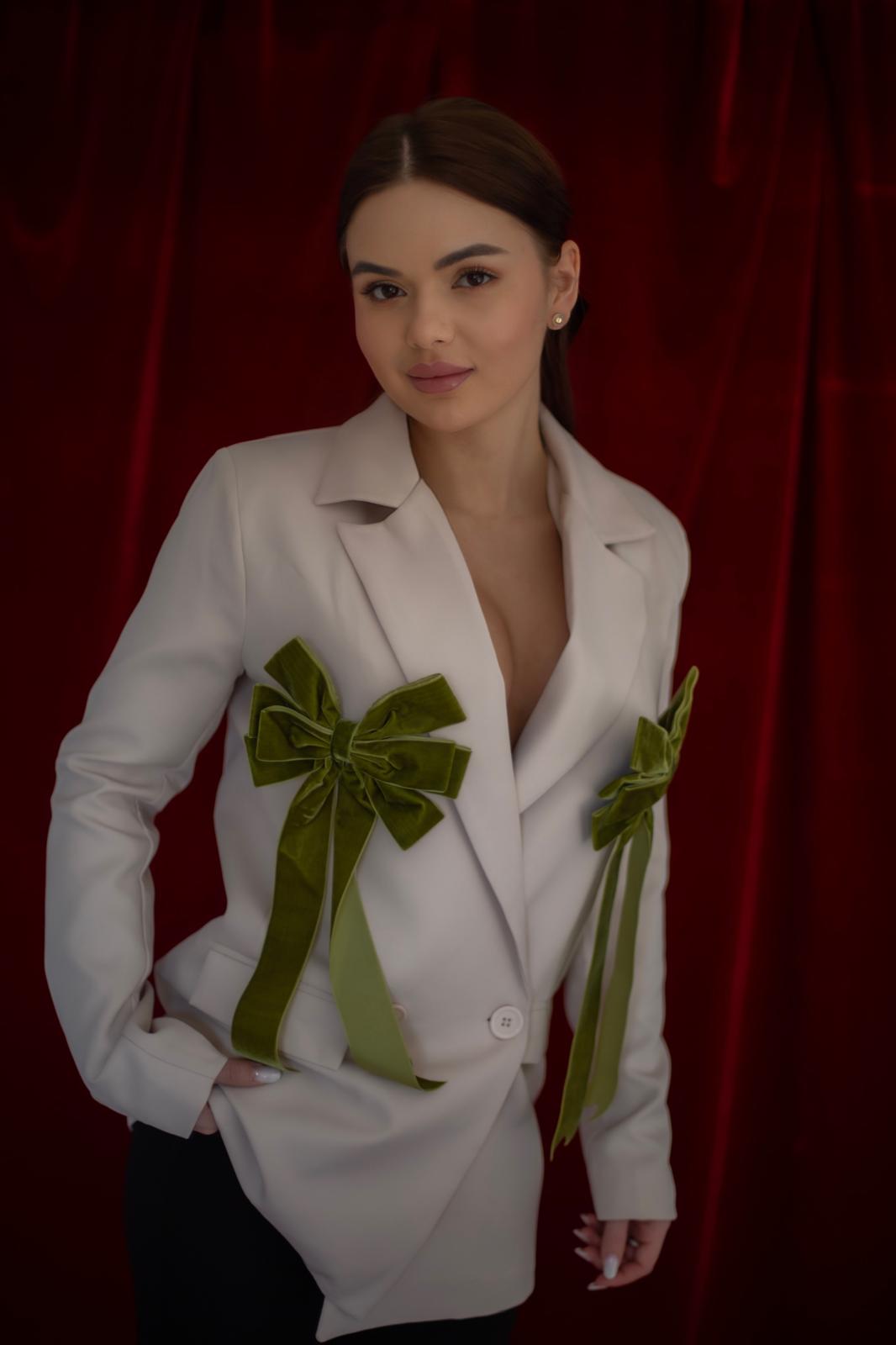 Sacou elegant, cu o croială modernă și feminină, ideal pentru ocazii speciale sau ținute office. Fabricat dintr-un material premium, se așază frumos pe corp și oferă un plus de rafinament oricărei apariții. Se închide cu nasturi discreti și poate fi ușor asortat cu fuste sau pantaloni eleganți.