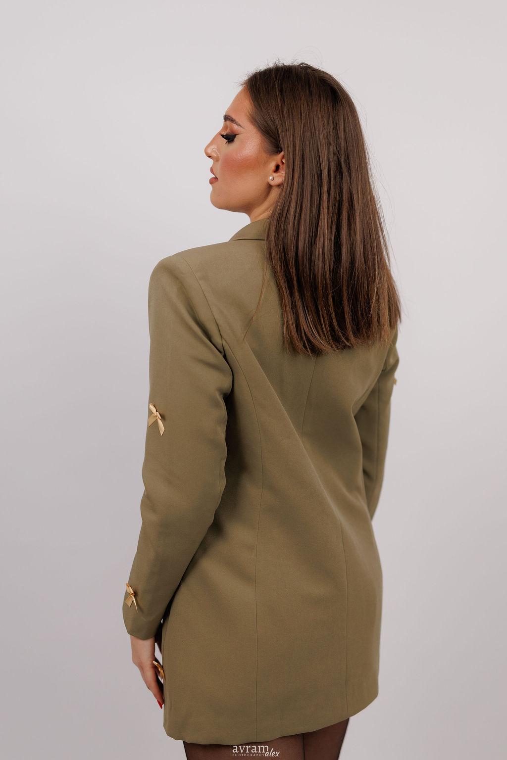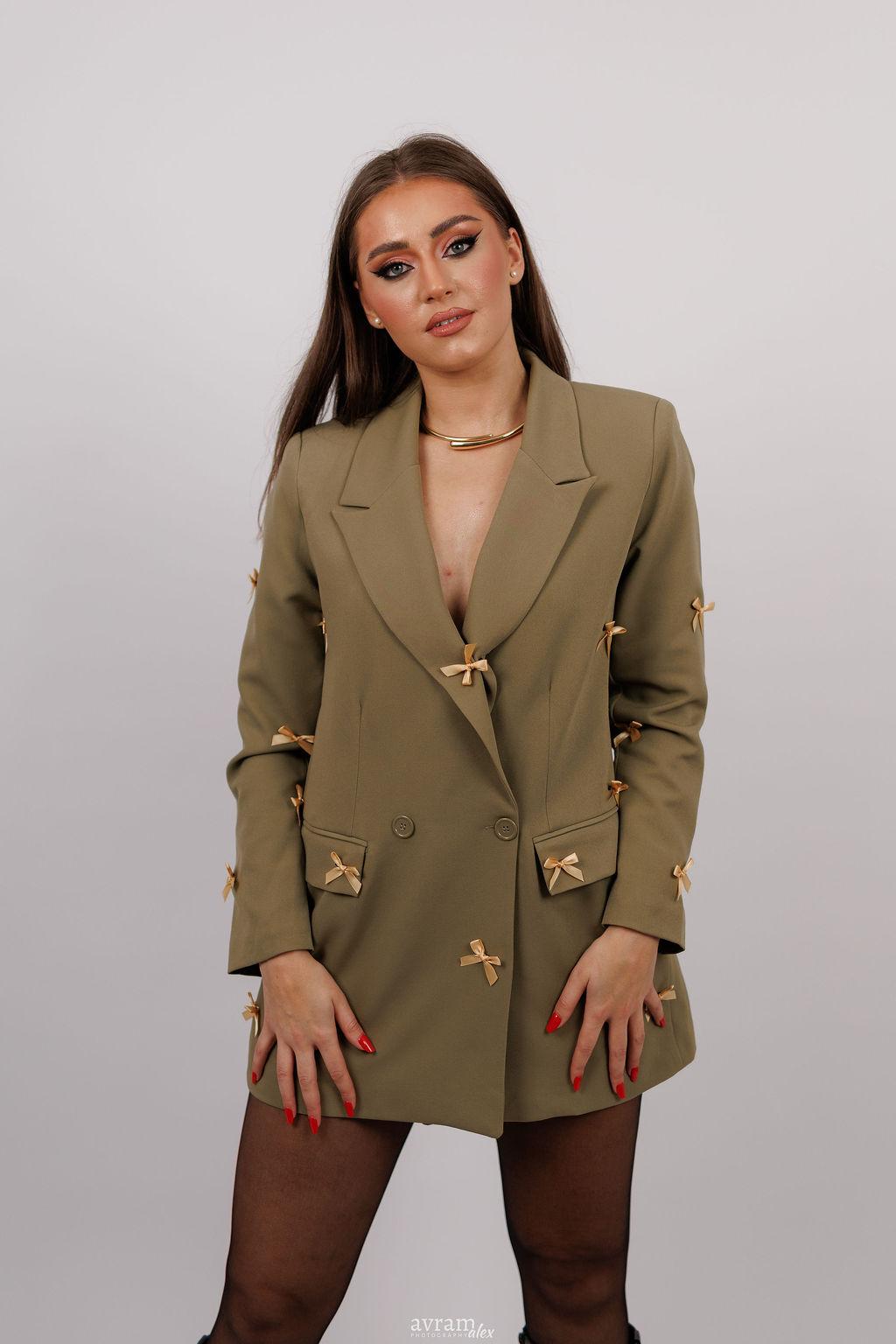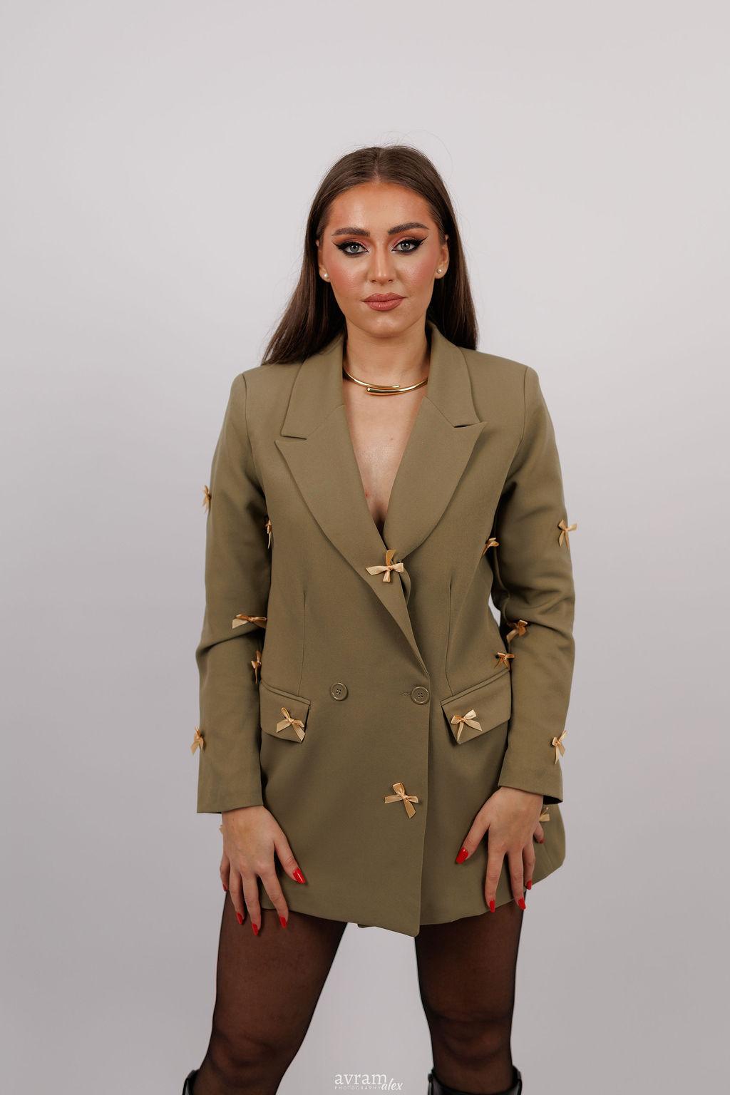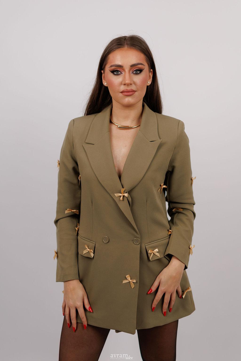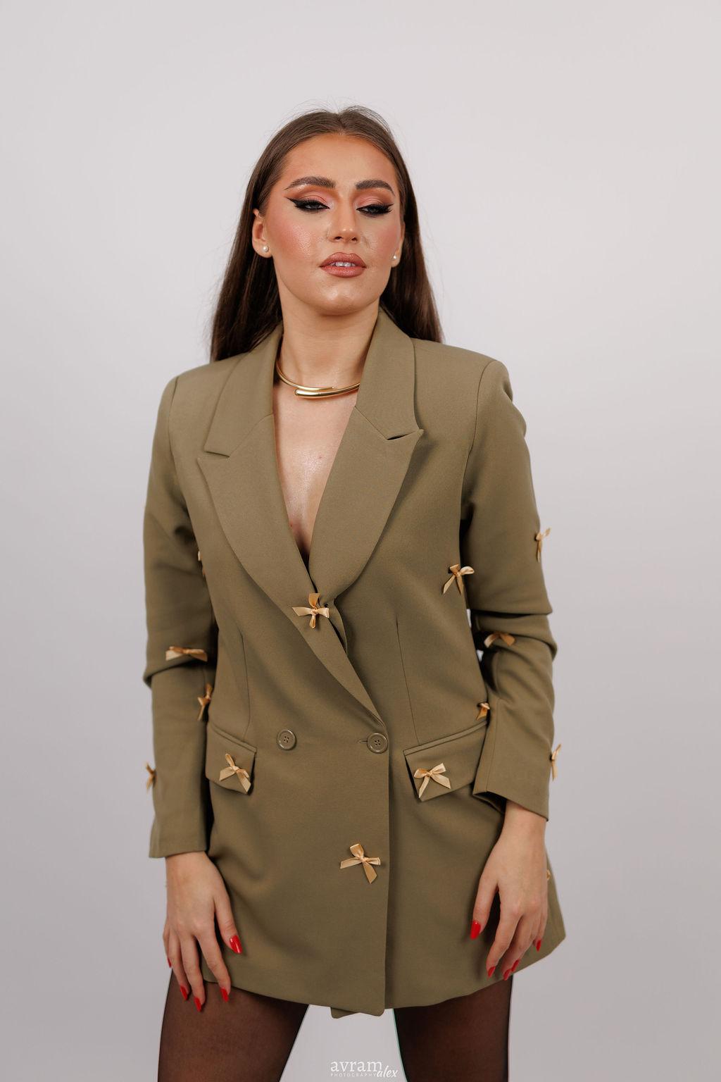 Un sacou modern, cu o croială impecabilă, menit să ofere un plus de rafinament oricărei ținute. Realizat dintr-un material de calitate, cu textură fină și structură bine definită, sacoul se așază perfect pe corp, evidențiind linia umerilor și conturul siluetei. Reverele clasice și închiderea cu nasturi adaugă un aer sofisticat, iar detaliile subtile – precum cusăturile fine sau buzunarele discret integrate – conferă un aspect profesionist și elegant. Ideal atât pentru birou, cât și pentru evenimente sau ținute smart-casual, acest sacou oferă echilibrul perfect între stil, confort și versatilitate.