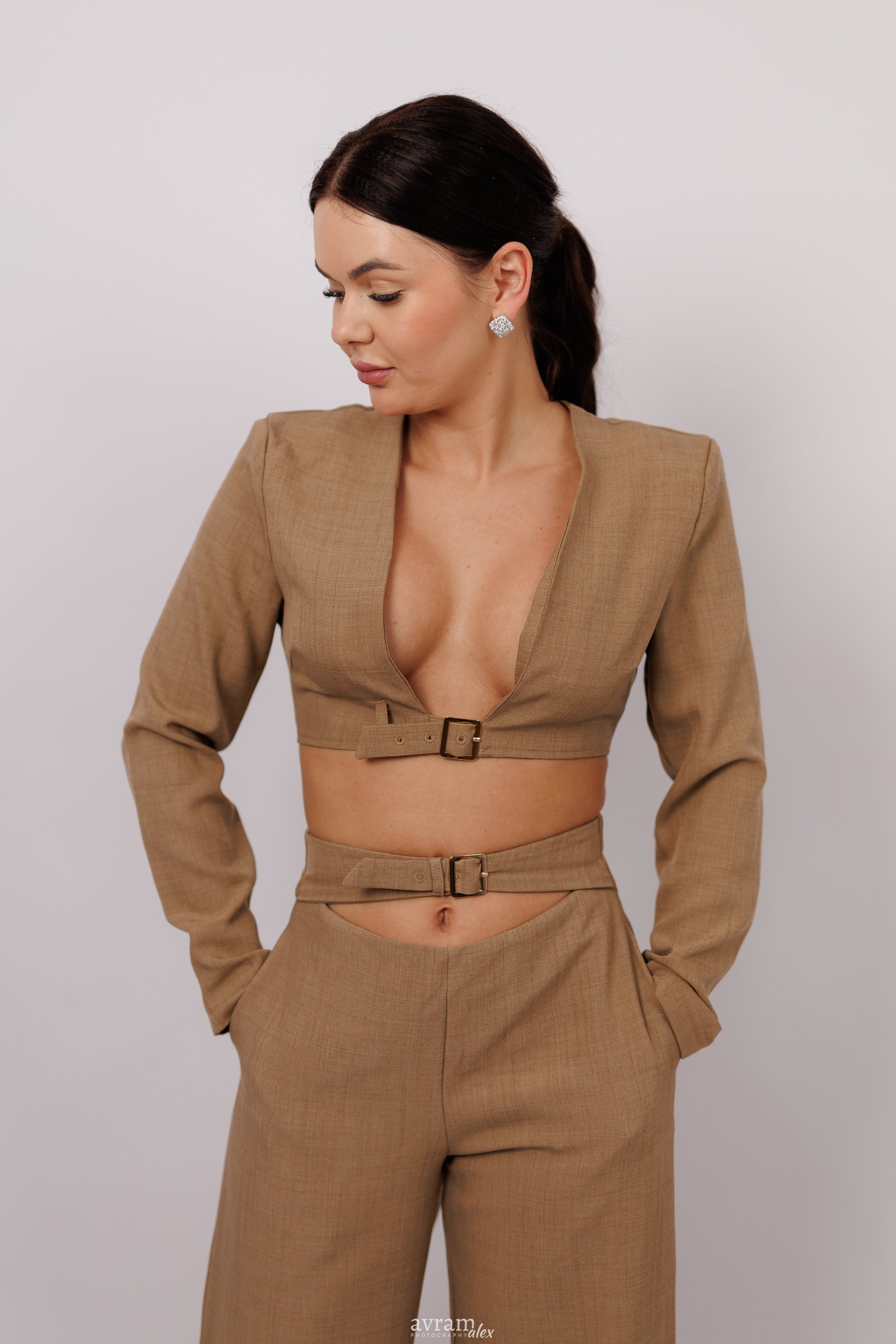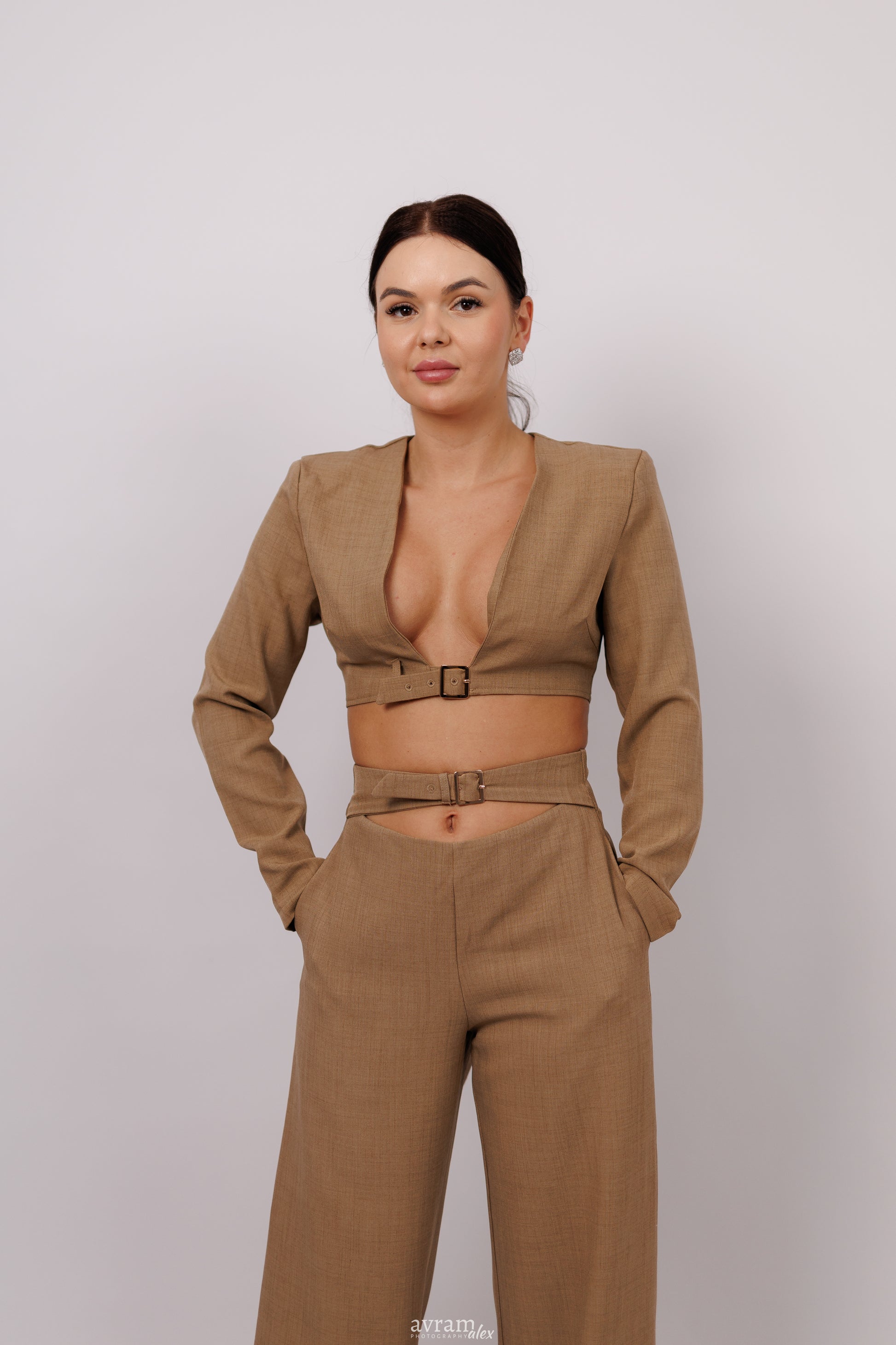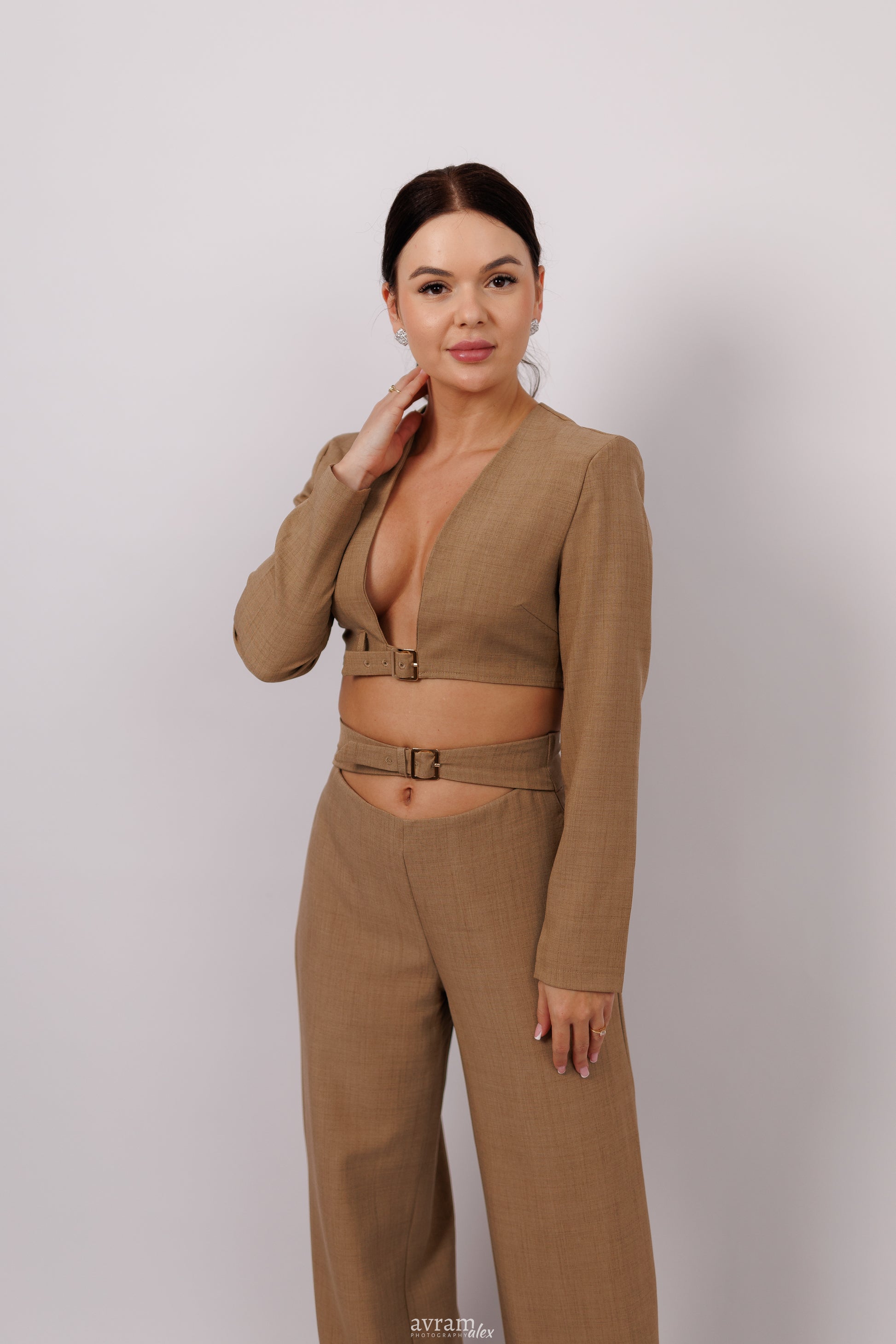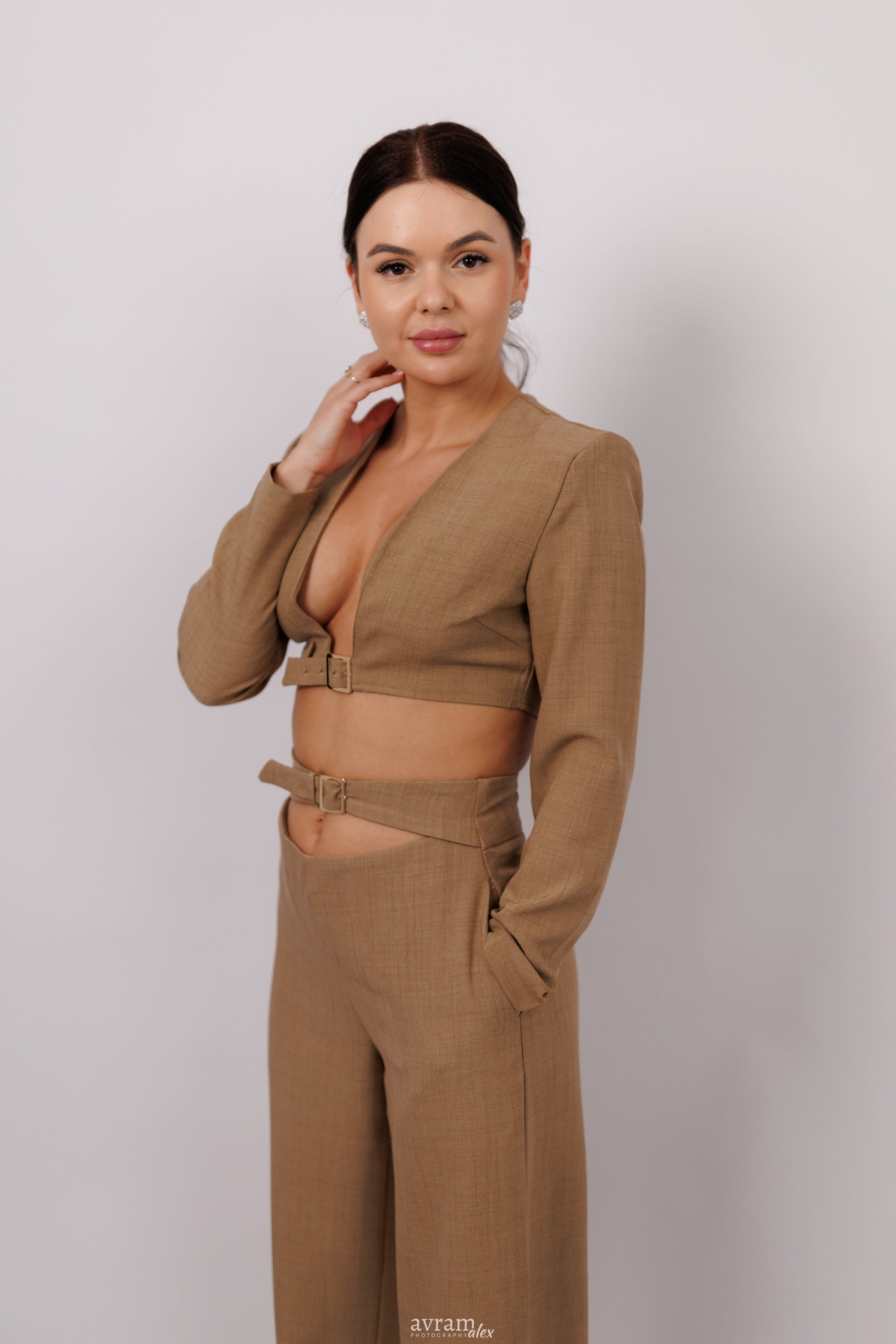 Acest compleu elegant este alegerea perfectă pentru evenimente speciale, întâlniri formale sau ocazii în care rafinamentul este esențial.Compleul evidențiază silueta și adaugă o notă sofisticată oricărei apariții.