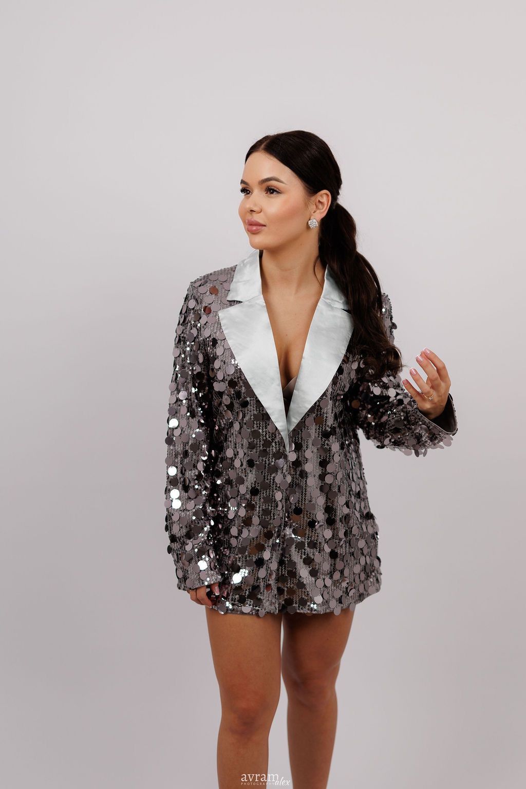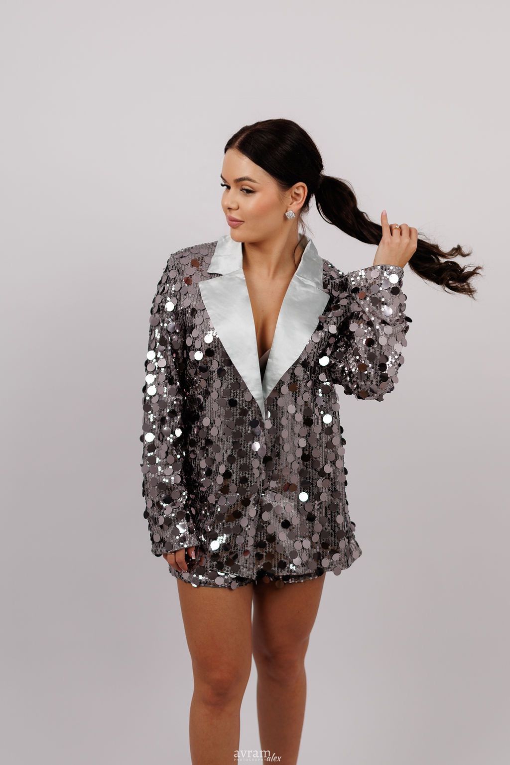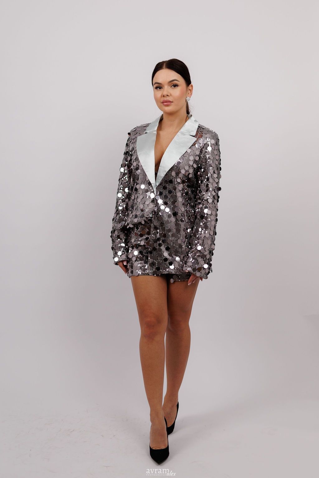Un compleu elegant care îmbină feminitatea cu rafinamentul, format dintr-un sacou atent structurat și pantalon scurt ce pune în valoare silueta. Perfect pentru evenimente speciale, seri festive sau ocazii în care vrei să radiezi în mod natural, acest compleu combină stilul modern cu un aer sofisticat și atemporal.